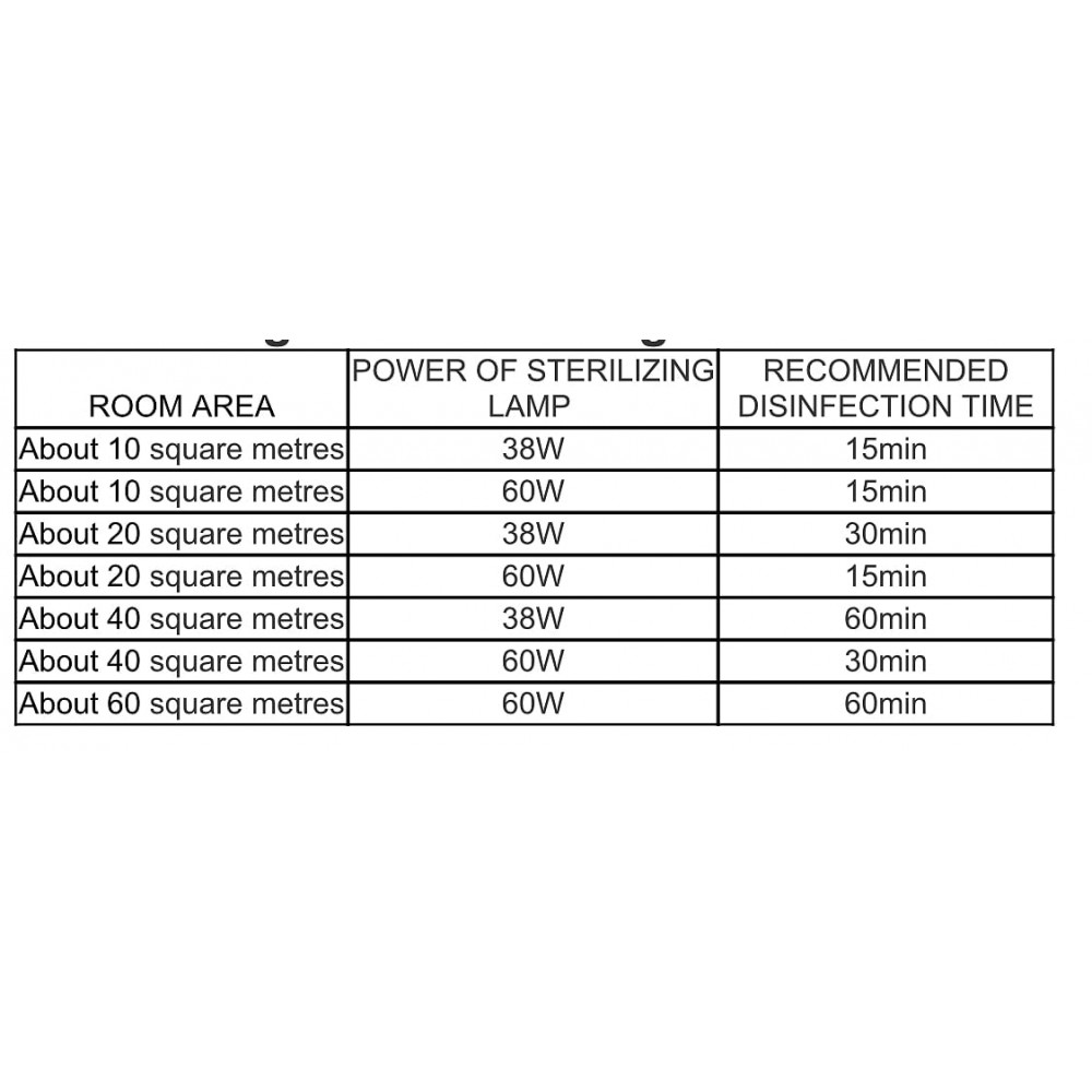 Ø Space Disinfection: Please place the sterilizer in the center of the room and set the sterilizing time according to the table below.